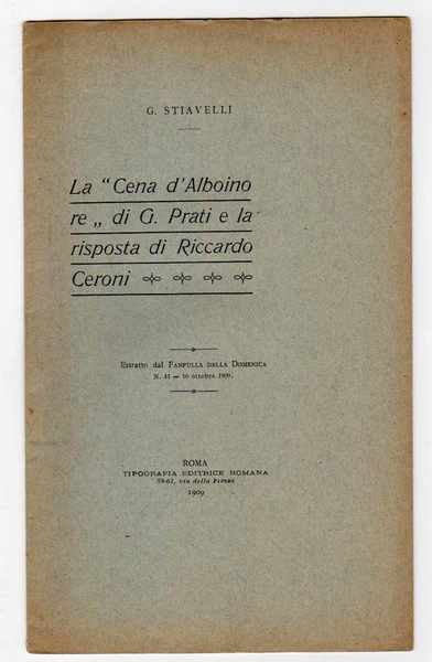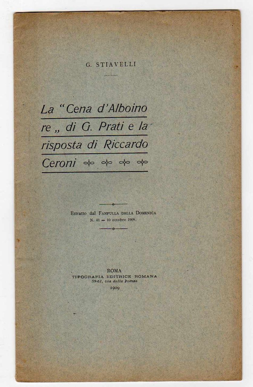 La "Cena d'Alboino" di G. Prati e la risposta di Riccardo Ceroni - Estratto dal Fanfulla della Domenica - n. 41 - 10 ottobre 1909
