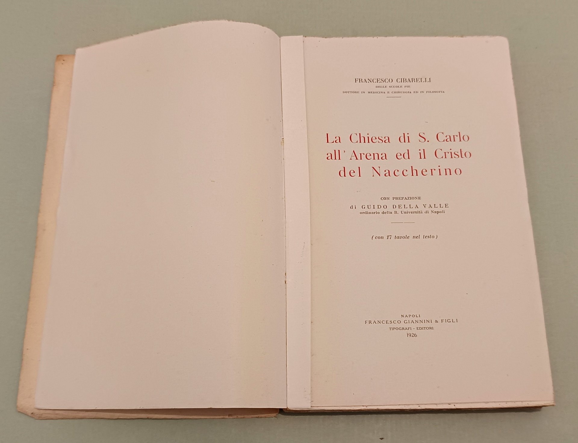 LA CHIESA DI S. CARLO ALL'ARENA ED IL CRISTO DEL NACCHERINO. NAPOLI, GIANNINI, 1926.