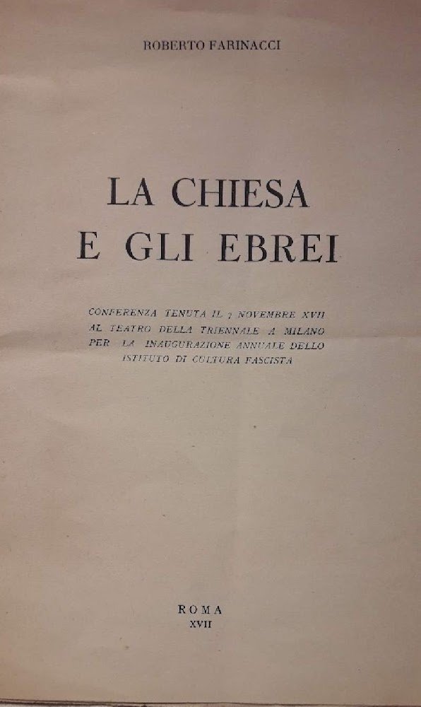 Fascicolo in 8', br.,a punta di spillo, pp. 16; Conferenza tenuta il 7 novembre XVII al Teatro della triennale a Milano per la inaugurazione annuale dello Istituto di cultura fascista.Segni d'uso e del tempo, buon es. ***Due to bureaucratic reasons, books dated over 70 years old cannot be immediately exported, please contact us before placing the order.***