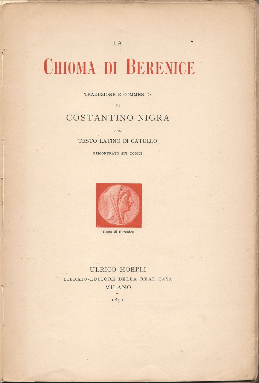 La Chioma di Berenice. Traduzione e commento di Costantino Nigra col testo latino di Catullo.