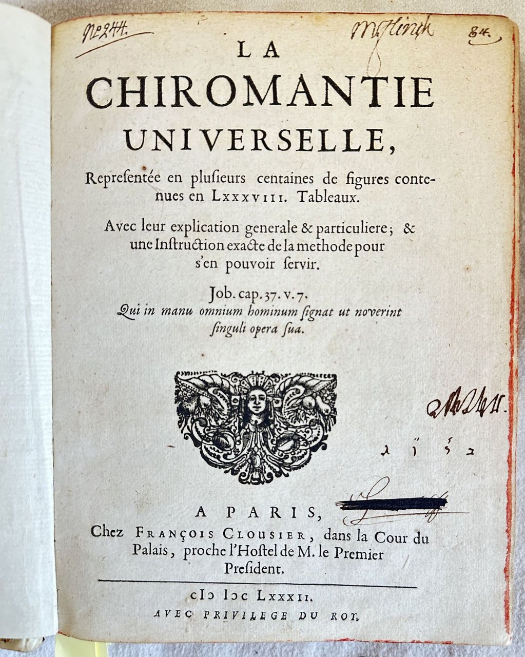 LA CHIROMANTIE UNIVERSELLE REPRESENTEE EN PLUSIERS CENTAINES DE FIGURES CONTENUES EN LXXXVIII TABLEAUX