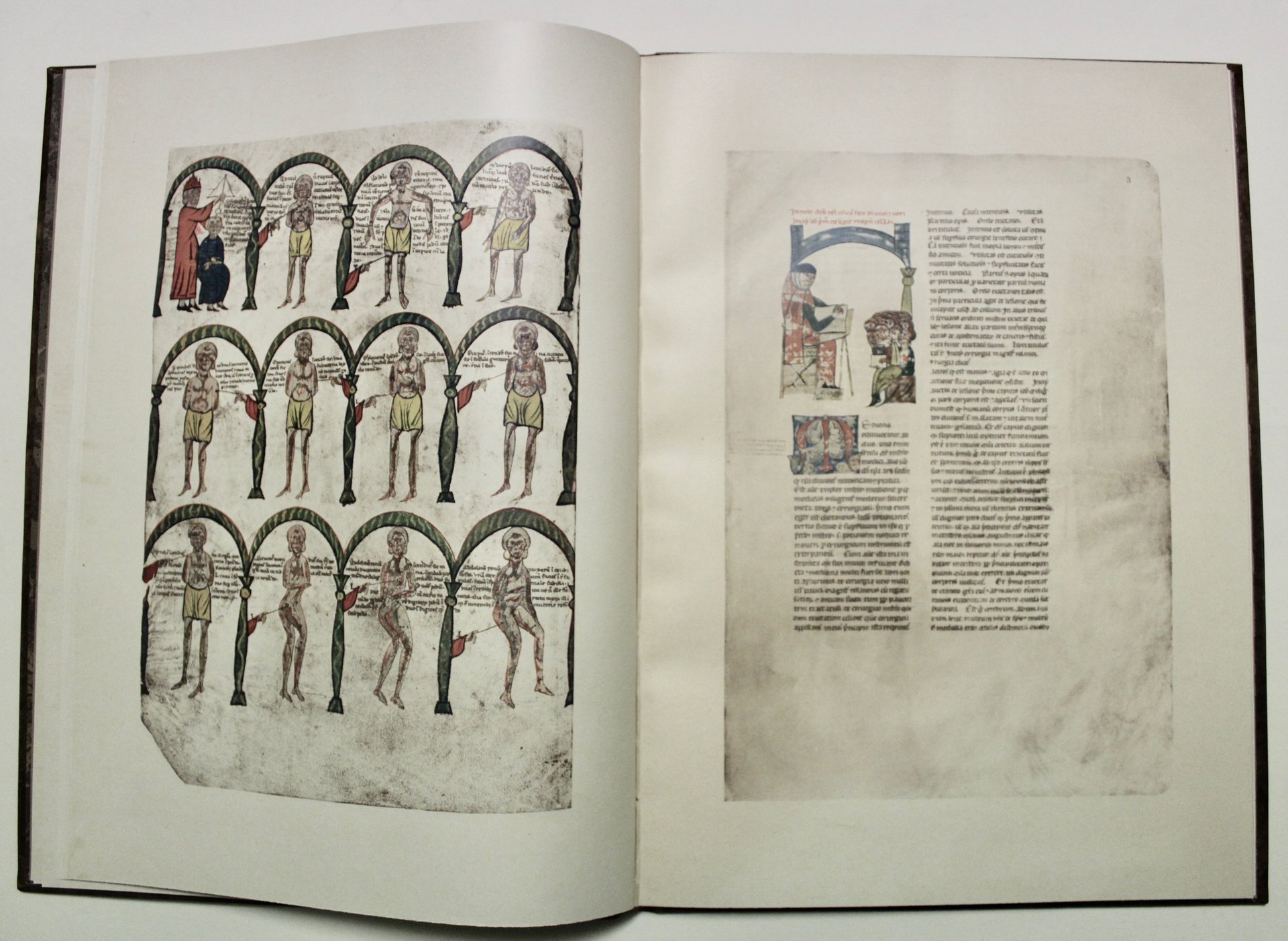 In folio (mm 467x280); pagg. (24 di note), pagg. 28 di anastatica con 25 miniature esplicative. <BR>Elegante legatura in piena pelle coeva d'amatore con fregi a rotelle, a secco ai piatti e doppia cornice dorata, titolo al piatto anteriore impresso in oro e filetti al dorso. Questa bellissima riproduzione del codice latino n. 1382 della R. Biblioteca Casanatense di Roma, contenente la Chirurgia di R. da Parma, è stata pubblicata con volgarizzazione e note di G. Carbonelli.<BR>L'autore medico chirurgo Rolando da Parma, detto dei Capezzuti, fece parte della scuola Salernitana; della sua vita non si sa altro se non che nacque a Parma e visse a Bologna in un'epoca che, secondo i diversi storici, varia fra il 1210 e il 1250. È certamente posteriore a Ruggero da Parma, di cui seguì la scuola e di cui l'opera chirurgica di R., chiamata nel Medioevo Rolandina, può considerarsi il commento, per quanto non in tutto i due autori siano d'accordo.<BR>La Chirurgia di R. ebbe senza dubbio nel Medioevo fama assai maggiore di quella di Ruggero.<BR>Fu stampata parecchie volte; la prima a Venezia nel 1498, successivamente, in una seconda edizione, nel 1499 e in seguito nel 1516, 1519 e nel 1541; le prime volte insieme con Guy de Chauliac, la quinta insieme con Albucasis. Oltre a interessanti particolarità dell'armamentario consigliato da R., è notevole la priorità che risulta spettargli nei riguardi di certe posizioni da darsi agli operandi, simili a quelle che furono descritte come novità in tempi recenti: tali la posizione seduta per operazioni di trapanazione del cranio e la posizione inversa, raffigurata in una tavola assai dimostrativa, per interventi addominali, e che è identica alla cosiddetta, erroneamente, "posizione di Trendelenburg". Ottimo esemplare. <BR>
