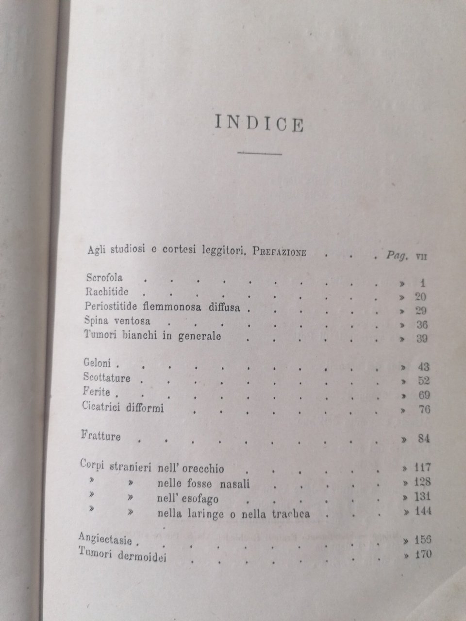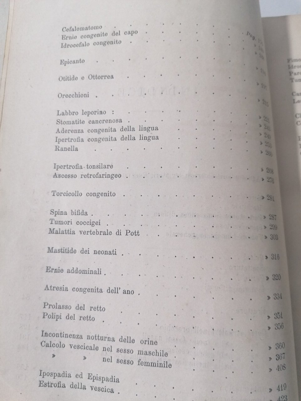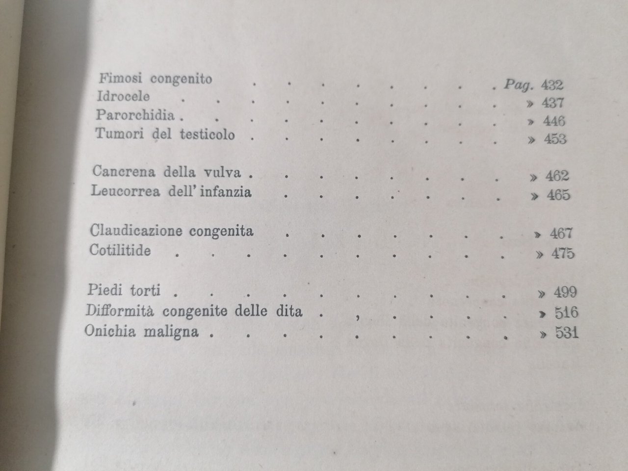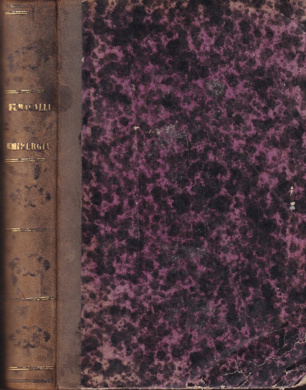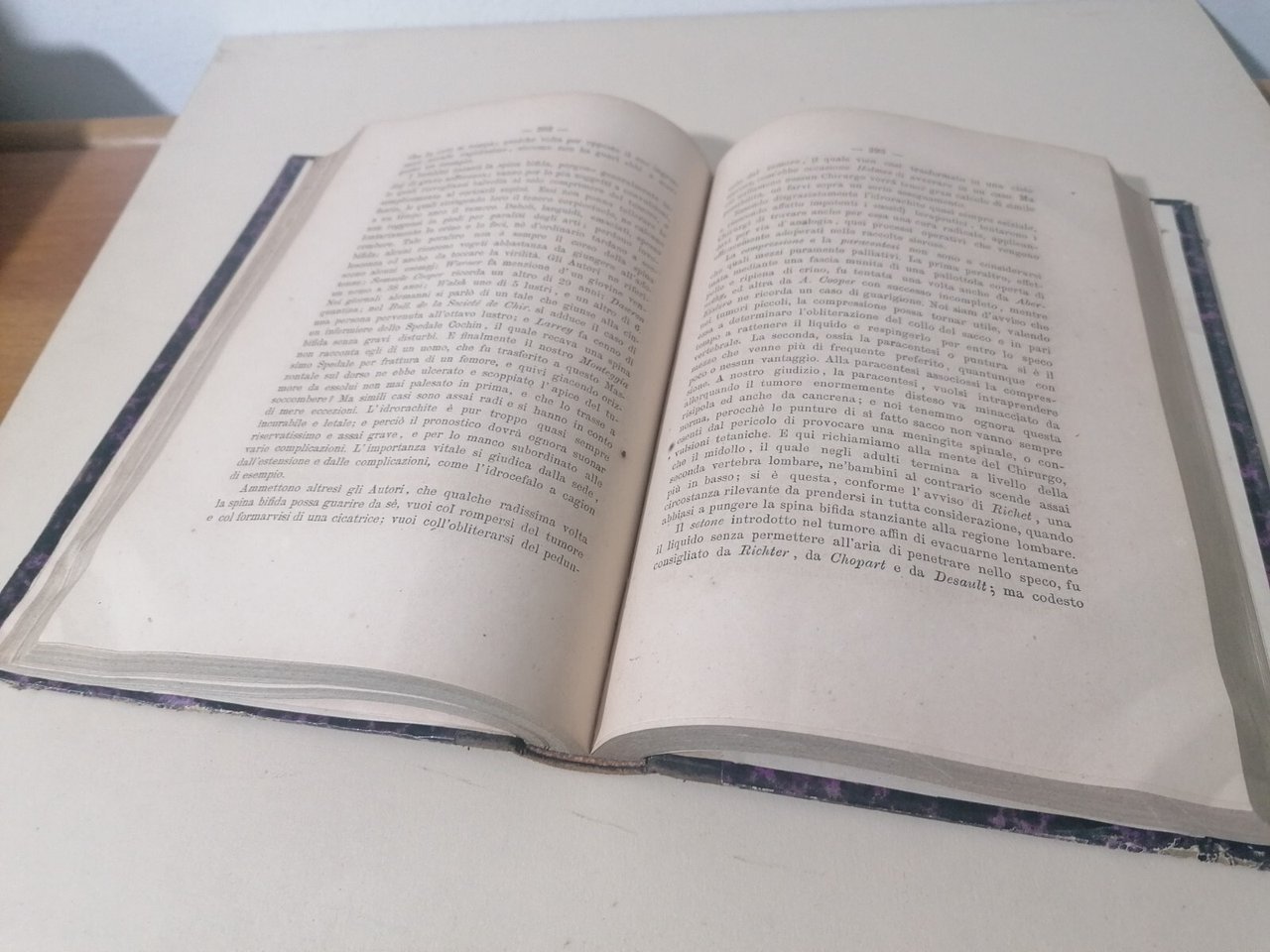 Mezza pergamena con titolo su tassello al dorso in oro e filetti dorati. Interessante trattato di pediatria che non si avvalora di essere un trattato di patologia chirurgica, ma un libro sulle malattie infantili e i processi operatori suggeriti nei vari casi. Condizioni: discrete, compatibilmente con l'età. Normali segni del tempo. NO fioriture, pagine mancanti o altri difetti macroscopici.