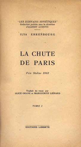 La Chute de Paris. Roman. Prix Staline 1942. Traduit du russe par Alice Orane et Marguerite Liénard.