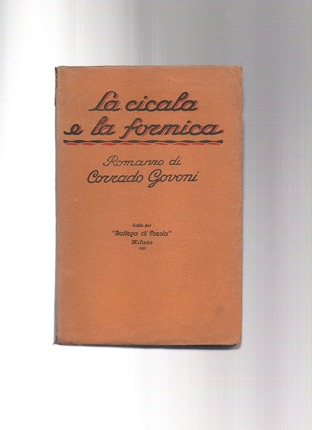 LIBROPrima edizione.Mancanza all’angolino alto anteriore, per il resto ottimo (carte normalmente brunite).Quarto romanzo govoniano, uno dei suoi più riusciti. Sprezzante il giudizio di Gino Raya nel volume dedicato al «Romanzo» nella «Storia dei generi letterari italiani» della Vallardi: «“La cicala e la formica”, che pure è un gran passo rispetto a quei tre romanzi [“Quando ombra è sole”, “La terra contro il cielo”, “La strada sull’acqua”], alterna sfoghi malsani a sentenze da avvinazzato, difese dell’incesto e tenerezze filiali».