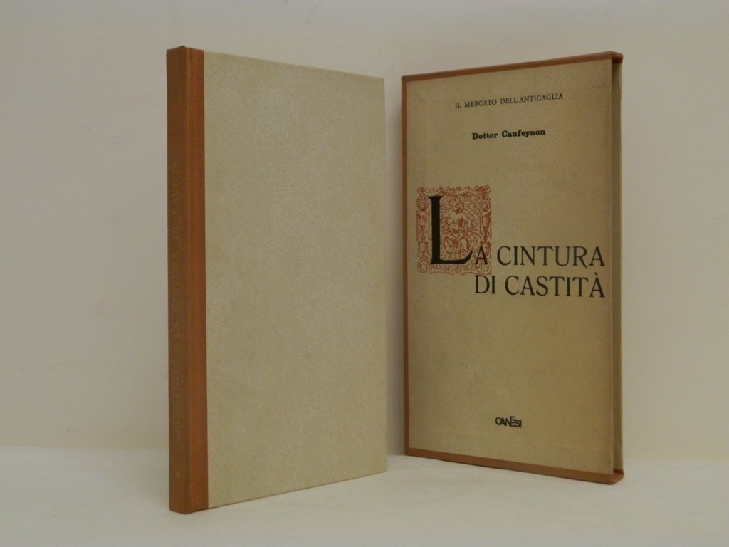 8^, mm 205x120, pp. XIX, 89, mezzatela editoriale con titoli in oro al dors, cofanetto editoriale, ottimo stato di conservazione, minime tracce di polvere al cofanetto, il volume invece sembra nuovo, perfettamente fresco, ex libris al contropiatto anteriore, con 8 tavole in bianco e nero fuori testo su carta lucida. Collana "Il mercato dell'anticaglia", diretta da Alberto Consiglio, n. 4, tradotto dal francese da Gianni Mauro..L'uso della cintura di castità risale alla fine del secolo XIV o al principio del XV, la sua apparizione avvenne in Italia. Lo strumento detto "Bellifortis", è presentato come di origine fiorentina. "Mercé questo meccanismo, si potranno garantire le fanciulle da quelle sventure che le coprono di vergogn. I padri saranno sicuri d'esser padri e sarà loro possibile di tener sotto chiave quelle cose che sono più preziose dell'oro. Nei tempi di disordine nei quali viviamo, in cui vi sono tanti mariti traditi, ho creduto di fare una buona invenzione e di rendere un servizio alla società, offrendole una eccellente invenzione destinata a tutelare la morale". *** TUTTI I NOSTRI LIBRI SONO VISIBILI PREVIO CONTATTO MAIL O TELEFONO NELLA NUOVA SEDE DI MILANO: LIBRERIA COSMOPOLIS, VIA JOMMELLI, 22. ***