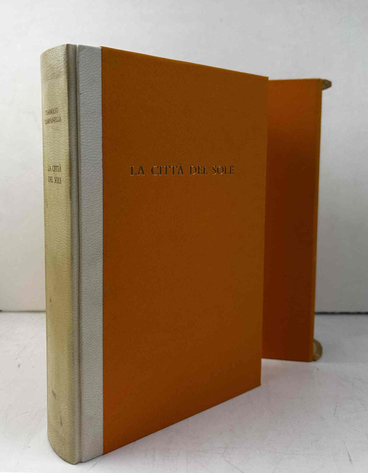 Cm. 21, pp. lix (1) 405 (5). Con antiporta illustrata raffigurante Tommaso Campanella. Leg. editoriale in mezza pergamena con titoli impressi al dorso e al piatto. Taglio di testa dorato. Entro cofanetto. In perfetto stato di conservazione. Collana "Biblioteca dell'Utopia" Silvio Berlusconi Editore. Questa edizione de "La città del sole" di Tommaso Campanella relizzata dalla officina tipografica Ruggero Olivieri per Publitalia '80 è stata composta in Monotype con il carattere Bembo e stampata su carta velata avorio delle cartiere di Sicilia appositamente fabbricata e filigranata con il logo ddel gruppo Fininvest. Il ritratto dell'autore in antiporta è di Pietro Lodi.