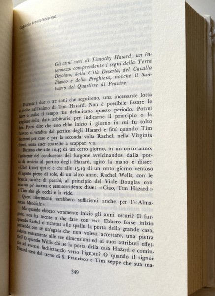 Soggetti: Letteratura americana contemporanea, Romanzo di formazione, Classici, Narrativa, Romanzi, Provincia americana, Cultura, Mito, Artisti, Creatività, Musica, Canzoni, Moonlight and Roses, Preludio, Libri Vintage Fuori catalogo, Racconti, Saghe familiari, Alba fatale, Sinfonia, Natura, Armonia, Tim Hazard, Conflitti, Amicizia, Amore, Passioni, Peavine, Beverly Hills, Mar dei Sargassi, Wingfield Park, California, Adolescenza, Lago Pyramid, Deserto, Lago Tahoe, Albero degli Impiccati, Oklahoma, Reno, Viaggio, Rhyolite, Carmel, Foresta, Cavalli, Tristano, Sunday Wind, Mary, Violino, Città di sabbia, Pioppi, Montagne Rocciose, Alberi, San Francisco, America, Blues, Danza, Suono, Pianoforte, Solitudine, Relazioni, Court Street, Voci, Vita, Musicisti, Società, Marjory, Timmy, Helen, Rachel, Contemporary American Literature, Bildungsroman, Classics, Fiction, Novels, American Province, Culture, Myth, Artists, Creativity, Music, Songs, Prelude, Discontinued Books, Tales, Family Sagas, Fatal Dawn, Symphony, Nature, Harmony, Conflicts, Friendship, Love, Passions, Peavine, Sargasso sea, Adolescence, Desert, Lake Tahoe, Hanged man, Travel, Forest, Horses, Violin, Sand city, Poplars, Rocky mountains, Trees, Dance, Sound, Piano, Loneliness, Relations, Voices, Life, Musicians, Society