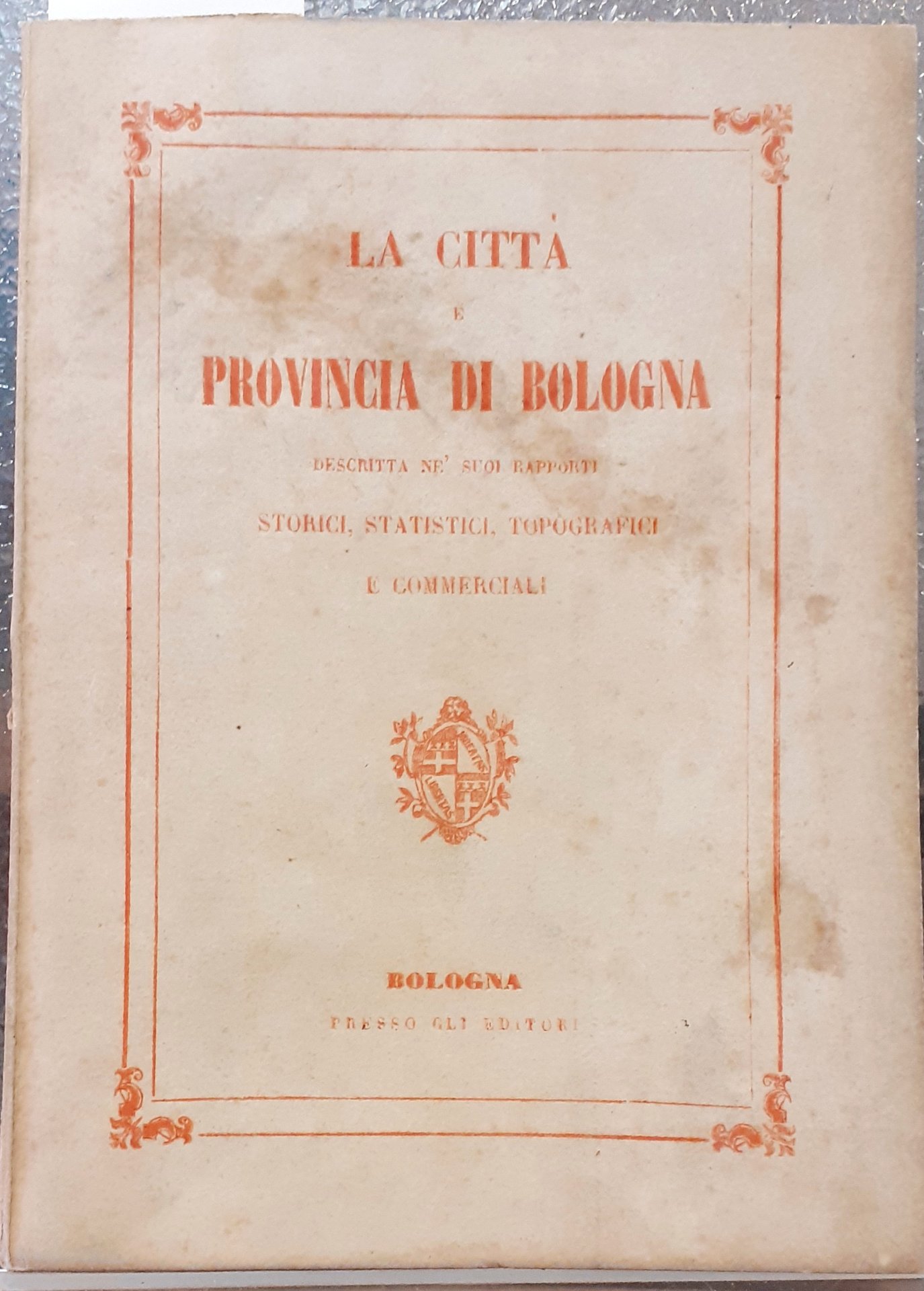 LA CITTA' E PROVINCIA DI BOLOGNA DESCRITTA NE' SUOI RAPPORTI STORICI, STATISTICI, TOPOGRAFICI E COMMERCIALI.