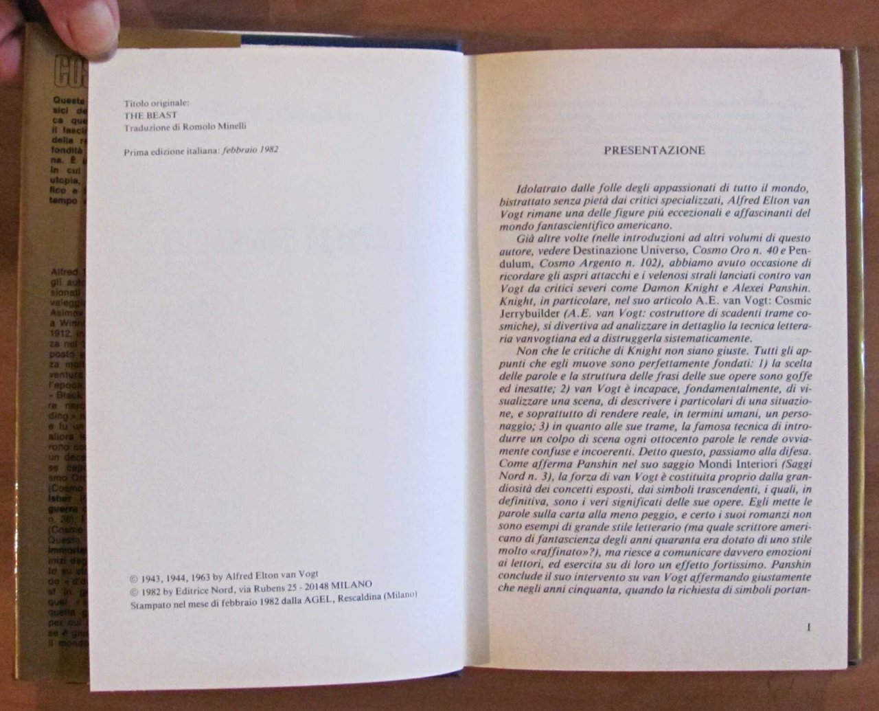 Cosmo Serie Oro - Classici della Fantascienza. Edizione Integrale. Editrice Nord - Milano, I edizione 1982. Tela editoriale con titoli al dorso e sovraccoperta originale. 13,5x19,5; pp.207. Ottimo stato. , Ottimo (Fine)