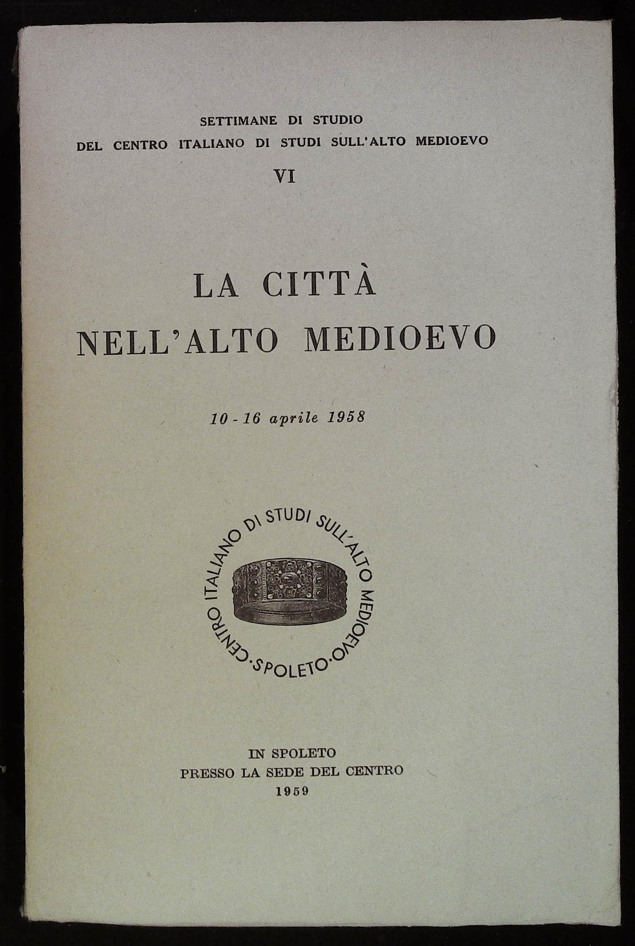 in 8° bross. ed. in barbe, pp. 751 coll. Settimane di studio del Centro italiano di studi sull'Alto Medioevo n° VI Alcuni capitoli del libro sono in lingua tedesca, francese e spagnola Tavole b/n f.t. Piccolo strappo al margine basso di pag. 47, in ottimo stato (bh)