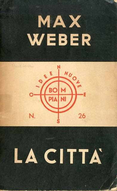 195 p. ; 21 x 13 cm. Idee nuove, 26. Che cosa fa sì che una "borgata" diventi una città? Che cos'è una città? L'estensione è un criterio necessario, ma non sufficiente. Max Weber, in questo saggio, va oltre l'urbanistica e delinea un'idea di città molto moderna, strettamente legata all'economia e alla politica. Le strade della città non sono solo vie di transito, sono flussi che favoriscono scambi materiali e immateriali. Lo sguardo dell'economista e sociologo si posa sull'urbe e si delinea una certezza: non c'è città senza mercato e sociabilità. Brossura editoriale, coperta in cartoncino flessibile colorato (b/n e rosso) con logo della collana. Segni del tempo alla coperta, ai profili e alle pagine interne (ingiallimento della carta), dorso danneggiato e riparato con nastro adesivo, alcune sottolineature a matita, per il resto libro integro, da studio. Codice libreria 9539.