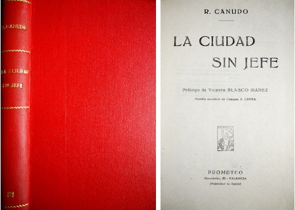 Valencia, Editorial Prometeo, s. a. (1924). 4to.; 273 pp., 2 hs., y una lámina aparte con un espléndido retrato fotográfico de Canudo. Encuadernación moderna en tela.