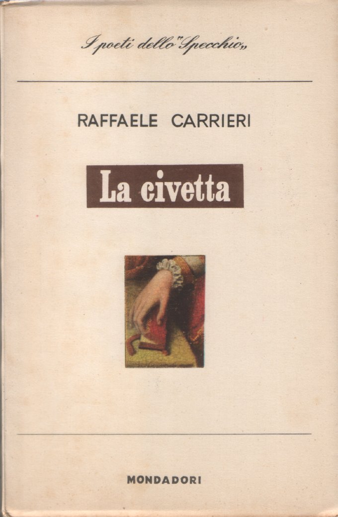In-16°, pp. 73, (7), copertina editoriale con sovraccoperta in velina. Normale patina del tempo alla sovraccoperta, con qualche piccolo, leggero segno d'umido. Leggera ingiallitura alla seconda e alla terza di copertina. Lievi, piccoli segni d'umido ai tagli; per il resto, molto ben conservato. Nella collezione "Lo Specchio - I poeti del nostro tempo". Prima edizione.