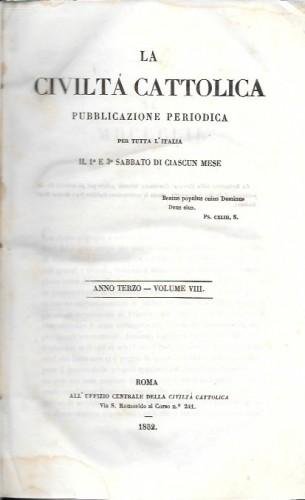 La Civiltà Cattolica, anno terzo, voll. 8°, 9°, 10, 11°, 12° (Indice)