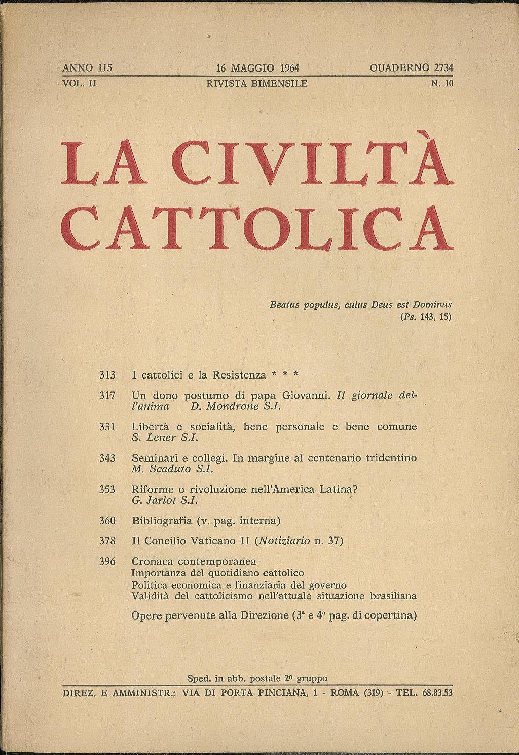 Rivista bimensile, Anno 115, 16 maggio 1964, quaderno 2734, vol. II. Pagine pubblicitarie all'interno. Leggero ingiallimento generale. Usura da scaffale