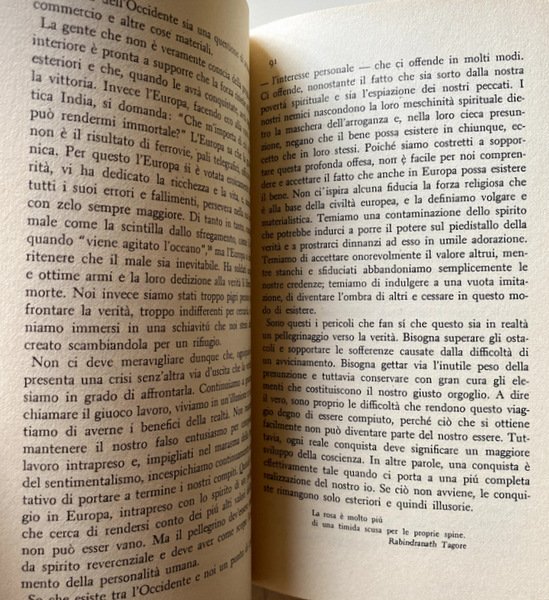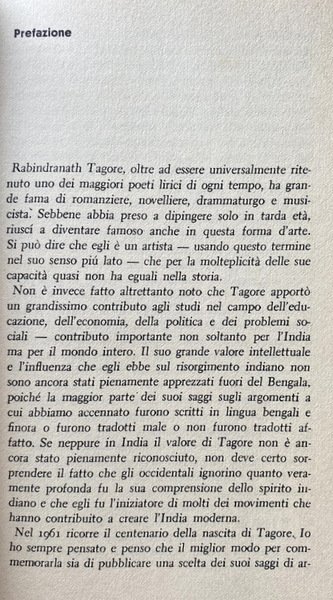 Soggetti: Storia culturale e sociale, Cultura indiana, Filosofia orientale, Filosofia indiana, Opere generali, Oriente, Asia, India, Scritti, Scienze sociali, Saggi, Condizioni sociali, Letteratura, Poesia, Spiritualità, Induismo, Politica, Economia, Impero britannico, Estetica, Bellezza, Arte, Religione, Critica, Pedagogia, Educazione, Pace, Libertà, Natura, Poesie, Il Giardiniere, Sadhana, Nazionalismo, Gitanjali, Raccolte, Antologie, Premio Nobel, Civilizzazione, Europa, Dipendenza, Islam, Bengala, Povertà, Inglesi, Dominio, Conoscenza, Induismo, Città, Villaggi, Vita quotidiana, Crisi, Civiltà, Viaggio, Problemi sociali, Supremo spirito, Bengali, Saggezza, Filantropia, Maitreyi, Istruzione, Elemosina, Moghul, Modernità, Emancipazione, Indipendenza, Brahmanesimo, Sudra, Guerre, Potere, Dominio occidentale, Dominazione, Forza, Sofferenza, Immortalità, Reincarnazione, Discorsi, Cooperazione, Novecento, Anni Venti, Anni Trenta, Anni Dieci, Vidya, Sundar, Poemi, Poesie, Intoccabilità, Caste, Poona, Harjian, Karma, Sottomissione, Calcutta, Pakistan, Cina, Giappone, Oppio, Upanisad, Indira Devi, Lettere strappate, Carteggio, Epistolario, Corrispondenza, Chinna Patra, Glimpses, Charles Freer Andrews, Articoli, La Grande sentinella, Purana, Nagpur, Gandhi, Kemal Pascià, Chakra, Califfato, Turchia, Sakuntala, Scuole, Kalidasa, Dharma, Divinità, Mahabharata, Sacerdoti, Kshatrya, Guerrieri, Vaisya, Commercianti, Manasa, Visvacharati, Sikh, Buddhismo, Fratellanza, Conferenze, Max Muller, Riviste, Pubblicazioni, Libri Vintage Fuori catalogo, Vedanta, Maestro, Illuminazione, Dacca, Congressi, Ottocento, Congresso Nazionale Indiano, Autonomia, Gurudev, Principi pedagogici, Antichi ideali indiani, Canti d'offerta, The crescent moon, Sadhana, Punjab, Amritsar, Reginald Dyer, Vishva Bharati University, Panteismo, Riferimento, Collezionismo, Consultazione, Cultural and Social History, Indian Culture, Oriental Philosophy, Indian Philosophy, General Works, Orient, Asia, India, Writings, Social Sciences, Essays, Social Conditions, Literature, Poetry, Spirituality, Hinduism, Politics, Economy, British Empire, Aesthetics, Beauty, Art, Religion, Criticism, Pedagogy, Education, Peace, Freedom, Nature, Poems, The Gardener, Nationalism, Collections, Anthologies, Nobel Prize, Civilization, Europe, Dependence, Bengal, Poverty, English, Dominion, Knowledge, Hinduism, Cities, Villages, Daily life, Crisis, Civilization, Travel, Social problems, Supreme spirit, Wisdom, Philanthropy, Education, Alms, Modernity, Emancipation, Independence, Brahmanism, Sudra, Wars, Power, Western domination, Domination, Strength, Suffering, Immortality, Reincarnation, Speeches, Cooperation, Twentieth Century, Twenties, Thirties, Ten Years, Poems, Untouchability, Submission, China, Japan, Opium, Torn letters, Correspondence, Articles, The Great Sentinel, Pasha, Caliphate, Turkey, Schools, Divinity, Priests, Warriors, Traders, Sikhs, Buddhism, Brotherhood, Conferences, Magazines, Publications, Out of print books, Vedanta, Master, Illumination, Congresses, Nineteenth century, Indian National Congress, Autonomy, Gurudev, Pedagogical principles, Ancient Indian ideals, Offering songs, Pantheism, Reference, Collecting, Consultation