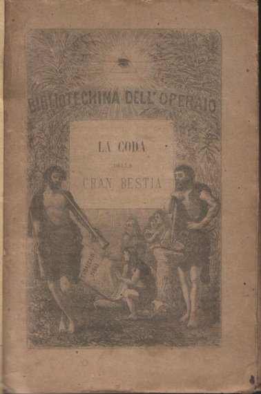 In-24°(cm 14,4x9,5), pp. 109, (3), copertina anteriore originale con dorso e copertina posteriore rifatti (con carta moderna, nella tipologia simile alla brossura originale ma più chiara nel colore, titoli manoscritti in nero al dorso). Nella collana "Bibliotechina dell'operaio" Scritto di propaganda clericale che demonizza il socialismo. Il tenore dello scritto è brillantemente anticipato dalle parole riportate sulla seconda di copertina. parole tratte da un articolo apparso sulla rivista Civiltà Cattolica: "L'operaio è il terrore e la speranza dell'odierna società. Se l'operaio verrà educato coi principi del liberalismo, esso per logica necessità sarà socialista e comunista; e siccome la classe è la più numerosa, essendo in essa compresi tutti i non abbienti, per poco che quest'educazione s'universalizzi, il socialismo e comunismo dovrà essere necessariamente il termine al quale sarà condotta la società. Per la contraria ragione, se l'operaio sarà educato cattolicamente, e questa educazione si renda in qualche modo generale e stabile, il pericolo dell'uno e dell'altro disastro sarà certamente scongiurato. Or ecco, uno dei principali obietti dello zelo cattolico. L'educazione cristiana dell'operaio, perché riesca al fine desiderato, è da promuovere con sforzi congiunti, per via d'associazione". Indice: Ai 20 mila che comprarono e ai 100 mila che lessero il libro della Gran Bestia due parole; I. Principiis obsta; II. Il visibile e l'invisibile; III. Grandi italiani nemici della Gran Bestia; IV. Anche un bell'esempio di Francia e lo dà un gran Vescovo; V. S'incomincia da ser Tuttesalle e si va a finire col filosofo Hegel; VI. Combatter sempre. Esempi italiani e francesi, sacri e profani alla rinfusa; VII. Il gran ciarlatano; VIII. Dopo il duello il suicidio; IX. Le trombe del ciarlatano e prima i giornali; X. Altro genere di trombe: i libri; XI. I maestri; XII. La statua di Nabucodonosor. Gli uomini tutti d'un pezzo e i fatti compiuti. Conclusione.