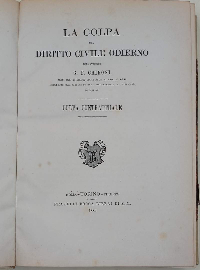 LA COLPA NEL DIRITTO CIVILE ODIERNO-COLPA CONTRATTUALE(1884)