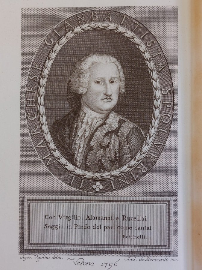 In-4° (cm. 31), legatura del secolo XIX in mezza pelle verde, dorso a nervi con titolo in oro, filetti e fregi impressi a secco (lievi abrasioni ai piatti); pp. XVI 224 in barbe, in ottimo stato (lievissime e sporadiche fioriture). Con elegante ritratto dell'autore finemente disegnato da Ugolini e inciso da de Bernardi all'antiporta, fuori testo, protetto da velina. Piccola gora all'angolo di pochissime carte. «Merita speziale riguardo quella (edizione) di Verona, Giuliari, 1796, essendo una delle più leggiadre fattesi modernamente in Verona<span style="font-size: 13.3333px;">» [</span>Gamba 2453]. Esemplare molto buono. (ND8)