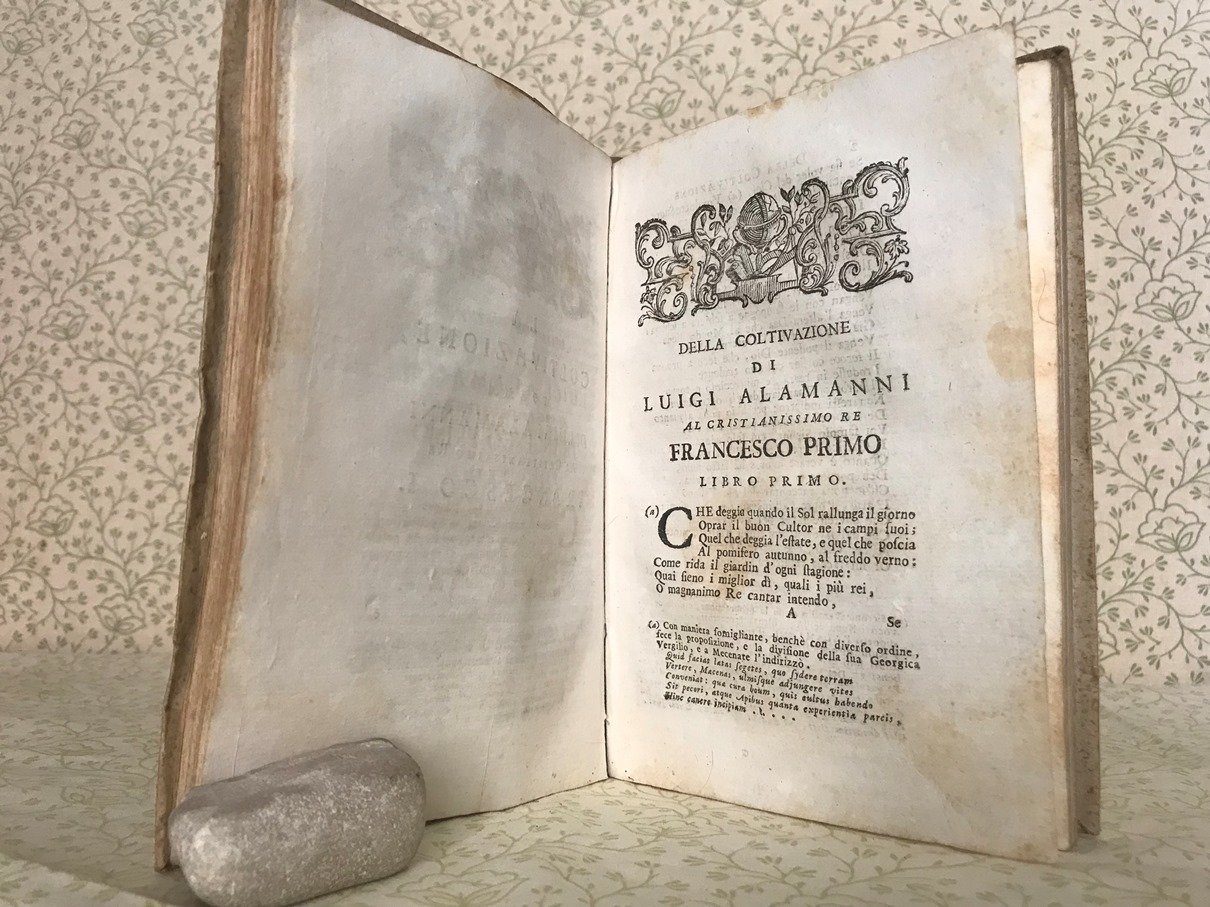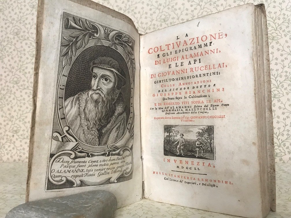 LA COLTIVAZIONE di Luigi Alamanni e L'API di Giovanni Rucellai. Colle annotazioni del Signor Dottor Giuseppe Bianchini da Prato sopra la coltivazione e di Roberto Titi sopra le Api. Colla vita dellAlamanni scritta da Signor Co. Gianmaria Mazzucchelli Bresciano accademico della Crusca e con una dotta lettera del Sig. Giovanni Checozzi Vicentino.