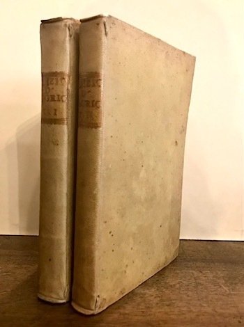 8vo (cm. 18,3), 2 Voll., 406 pp., 1 c.nn.; 349(1) pp., 1 c.nn. bianca. Legature coeve in pergamena rigida con titoli oro su tassello dipinto al ds. (minime tracce d’uso marginali). Ex libris al contropiatto anteriore. Antica firmetta di appartenenza ai frontespizi. Esemplare in ottimo stato di conservazione. Seconda edizione veneta di questo ricercato dizionario dedicato ai vari settori dell’agricoltura, del giardinaggio, dell’allevamento, ecc. Molto interessante il lungo capitolo dedicato ai vini italiani.