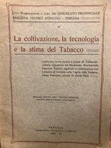[vt] Conferenze svolte durante il Corso di Tabacchicoltura organizzato dal Sindacato Provinciale Fascista Tecnici Agricoli in collaborazione con il Centro di Cultura sotto l'egida della Federazione Fascista, raccolte da Carlo Nuti. Dall'indice: la coltivazione, la concimazione, animali dannosi, principali malattie, la tecnologia, lavorazione industriale, la perizia del tabacco Kentucky alla Fattoria di Città di Castello, la perizia dei Tabacchi in regime di monopolio. Normale brunitura della carta, molto buono. Pagg. 122. Brossura edit. Mis mm 245x170