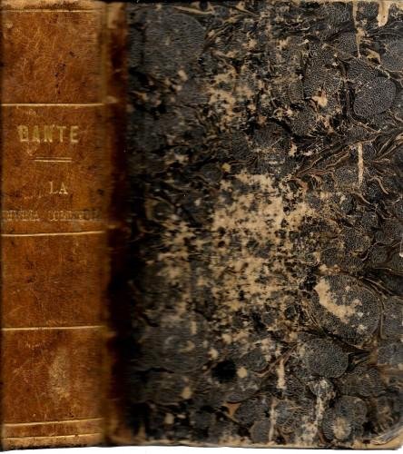 in 8°, pp. 474, 480, m/pelle coeva con tit. in oro al ds. Importante e ricercata opera che, al pregio delle note unisce un'eccellente bibliografia ed un utilissimo indice alfabetico. Nel 4° vol. si trova una 'Cronologia di avvenimenti connessi alla vita e al poema di Dante avverata su Gli Annali d'Italia, e documentata con citazioni dalle opere del poeta', e 'Notizie e pareri diversi intorno a forse duecento codici e alla serie delle edizioni della Commedia di Dante'. Ossidazioni dovute al tipo di carta e sfregamenti alla leg.; manca l'Inferno. Raro. 523/36