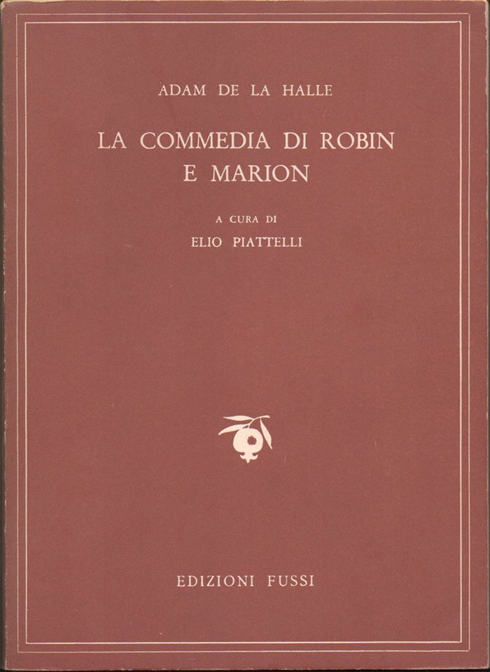 In-16° (16,8 x 12,1 cm), pp. 154, (6), copertina editoriale. Qualche lieve, normale segno d'uso alla copertina. Con sei tavole fuori testo, su carta lucida, ospitanti i "Passi musicati". Leggerissimo segno di piegatura nel bordo inferiore bianco e a quello esterno, sempre bianco, delle pagine dalla 137 alla 143. Normale patina del tempo alle pagine, con lievi arrossature ai margini dovute al tipo di carta, per il resto, ben conservato. A cura di Elio Piattelli. Titolo originale: Li gieus de Robin et de Marion. Testo francese con traduzione italiana a fronte. Volume 213-216 nella collezione «Il Melagrano. Scritti rari e rappresentativi di poesia e pensiero in versioni d'arte con testo a fronte».