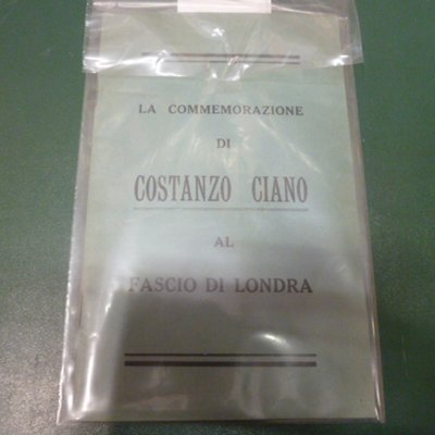 Discorso del Contrammiraglio Bruno Brivonesi all'Ambasciati Italiana di Londra per commemorare Costanzo Ciano, padre di Galeazzo, scomparso improvvisamente nel Giugno del 1939.