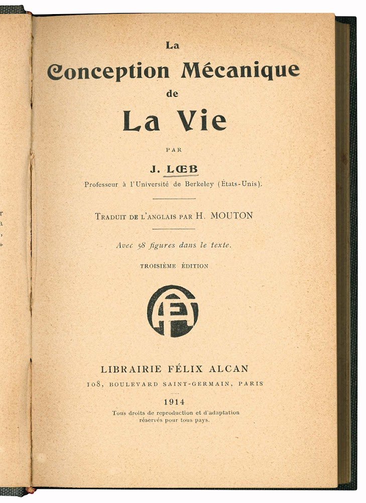 La conception mécanique de la vie. Traduit de l'anglais par H. Mouton. Avec 58 figures dans le texte. Troisième édition.