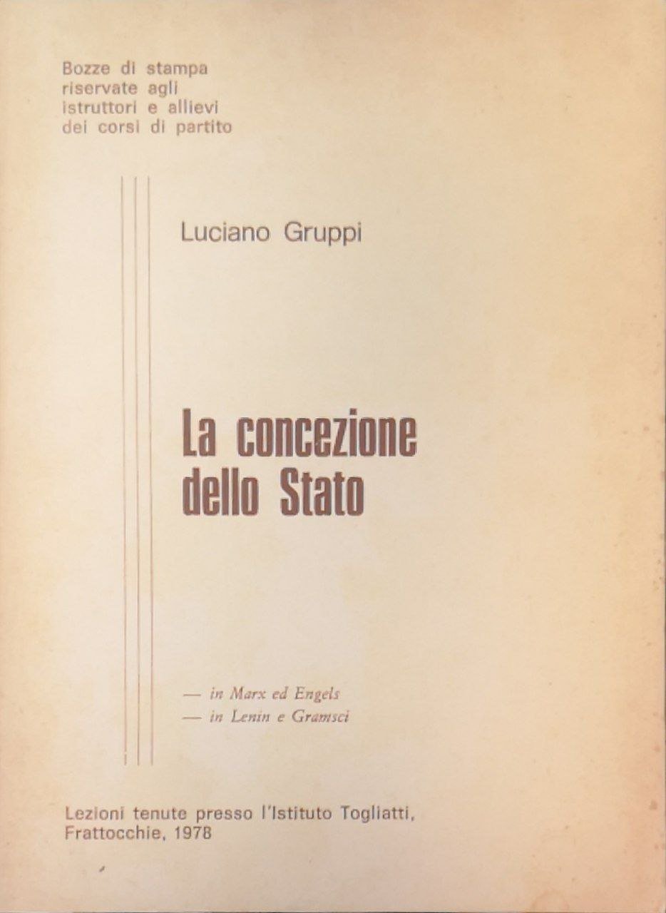 La concezione dello Stato: in Marx ed Engels, in Lenin e Gramsci. Lezioni tenute presso l'Istituto Togliatti, Frattocchie, 1978