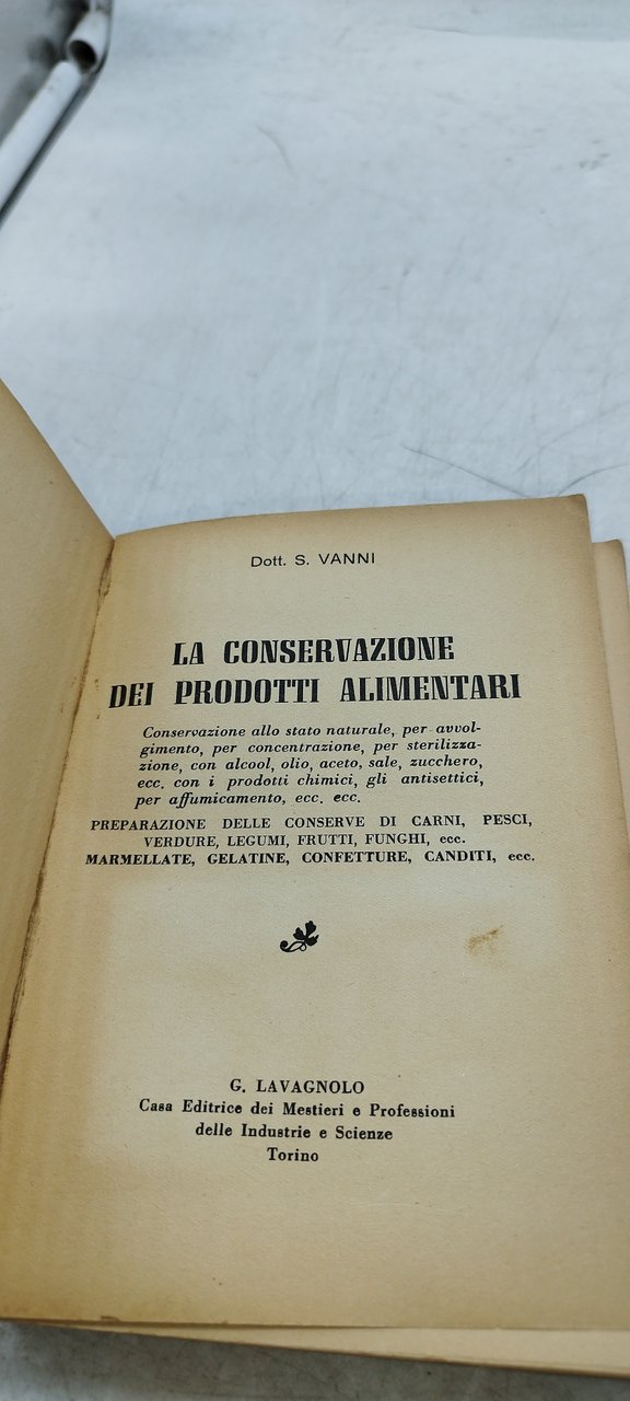 la conservazione dei prodotti alimentari dott s.vanni. , g lavagnolo italiano, °