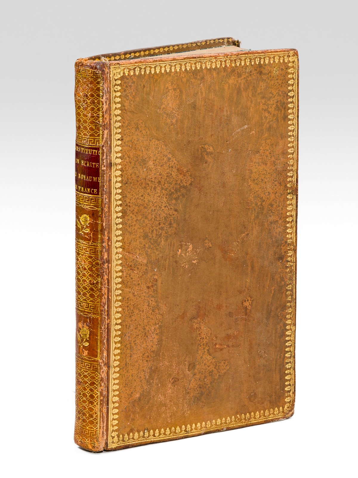 Par M. C. P. Ducancel, Avocat, Membre du Collège électorale du Département de l'Oise, 1 vol. in-8 reliure de l'époque pleine basane racinée, toutes tranches dorées, chez Hacquart, et chez de Bray, Paris, 1814, XII-124 pp. Rappel du titre complet : La Constitution non écrite du Royaume de France, et les Preuves qu'elle n'a jamais cessé, un seul instant, d'être en vigueur depuis Clovis jusqu'à ce jour ; suivi d'un Projet de Chartre, Pouvant former le Droit public de France, à l'Avènement de Sa Majesté Louis XVIII au Trône Rare exemplaire de cet ouvrage curieux mais représentatif de tout un courant politique royaliste, réduisant la Charte à l'expression secondaire d'une tradition millénaire. On notera l'usage de la graphie "chartre", encore usitée à l'époque ; c'est seulement dans son édition de 1935 que le Dictionnaire de l'Académie précisera que l'on "dit toujours Charte, quand ce mot signifie, Constitution". Etat très satisfaisant (reliure un peu frottée avec qq. usures, mouill. anciennes parfois fortes, bon état par ailleurs, ex-libris en garde).