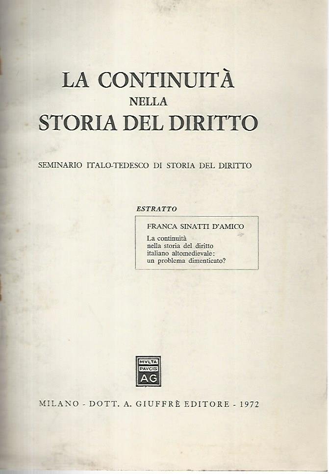Copertina: in brossura, sporca. Pagine testo: ingiallite, brunite ai margini. Interno in ottime condizioni. Estratto da la continuità nella storia del diritto. Buono (Good) .