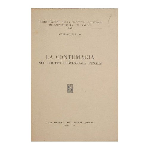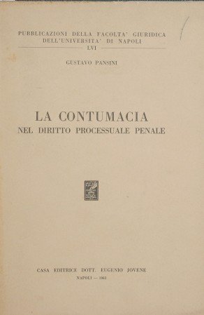 Collana Pubblicazioni della facoltà giuridica dell'Università di Napoli - LVI - in 8° - pp.263 - Brossura editoriale - Lievissime fioriture al dorso