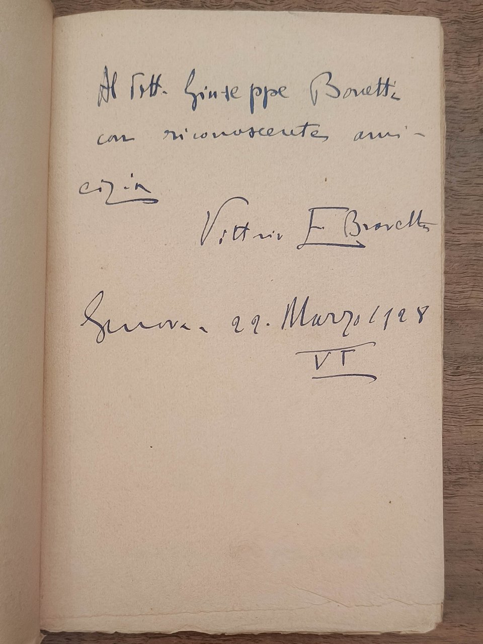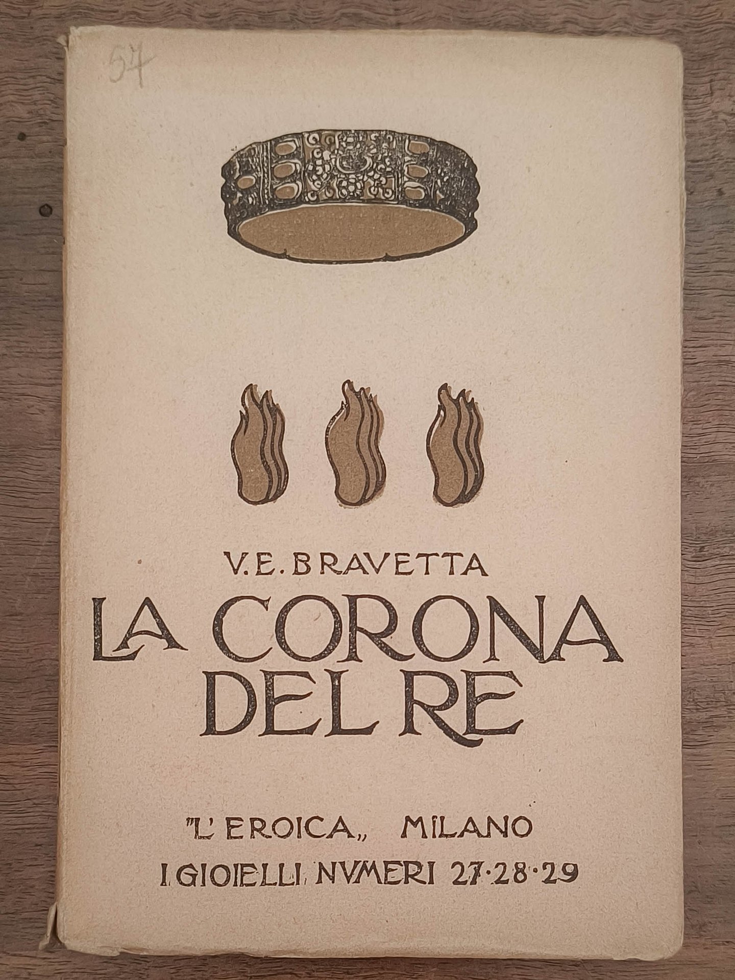 La corona del re, Milano, L'eroica, 1926. Cm 18,9. Pp. 168. Brossura editoriale. Numerose xilografie di P. Morbiducci. Dedica autografa dell'autore al Dott. Giuseppe Bonetti datata 22 marzo 1928.