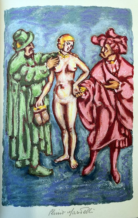 4°; pp. 196 non num. 4 su carta a tino Magnani di Pescia con filigrana originale appositamente fabbricata per l'Editore, intonso. Carattere De Roos, le tav. a colori sono tutte f.testo firmate a matita dall'Artista (Torino 1945). Ril. Cartoncino edit. con titoli al dorso e al piatto, camicia muta ed astuccio editoriale. Bella ediz. limitata a complessivi 241 esempl. numerati (140 num. araba, LXXV num. romana, 26 per i collaboratori contrassegnati da lettere dell'alfabeto). Ottimo esemplare.<BR>(vedi riproduz.)