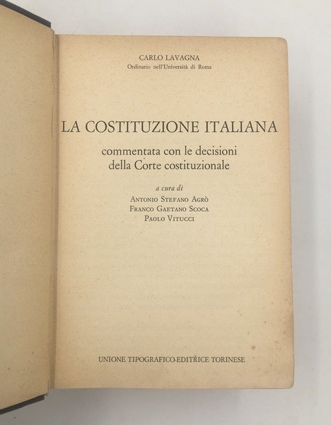 La COSTITUZIONE ITALIANA commentata con le DECISIONI della CORTE COSTITUZIONALE a cura di di Antonio Stefano Agrò, Franco Gaetano Scoca, Paolo Vitucci.