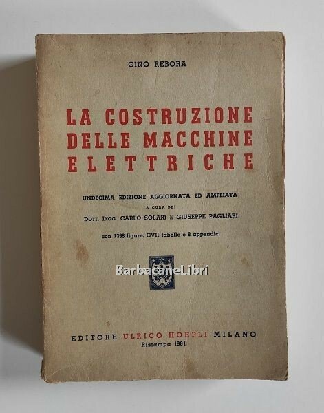 Stato di conservazione: BUONO, ordinarie tracce d'uso e del tempo alla copertina e al dorso, fioriture ai tagli, nessuna scritta o sottolineatura, pagine intonse da p. 125 in poi. Undecima edizione aggiornata ed ampliata. A cura dei Dott. Ingg. Carlo Solari e Giuseppe Pagliari. Ristampa del 1961.