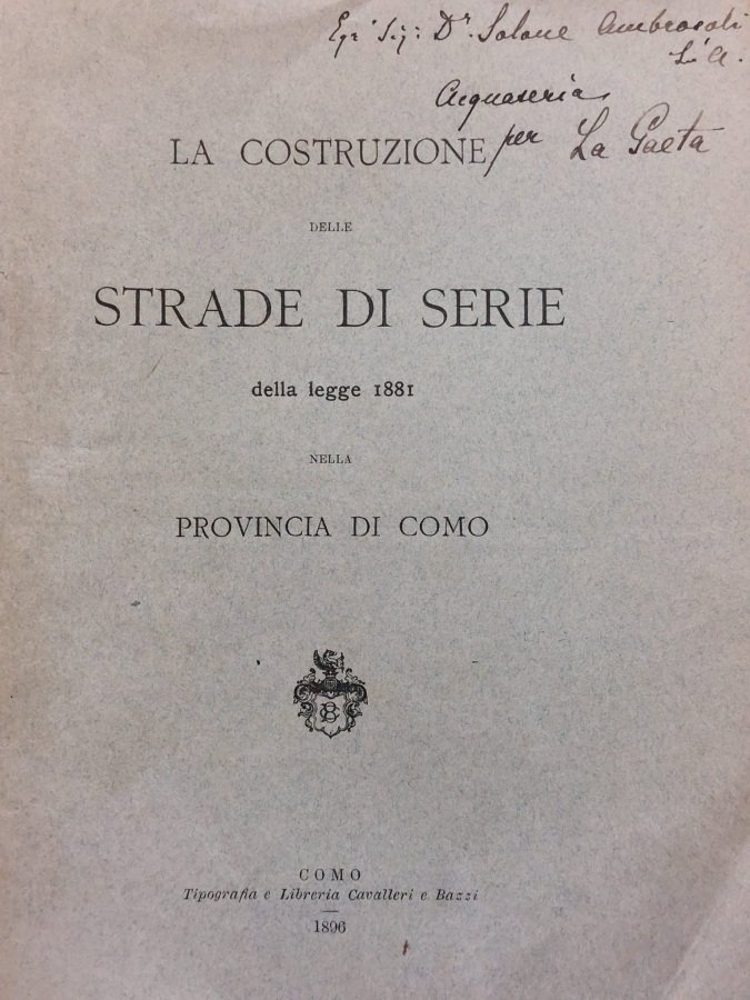 La costruzione delle strade di serie della legge 1881 nella Provincia di Como.