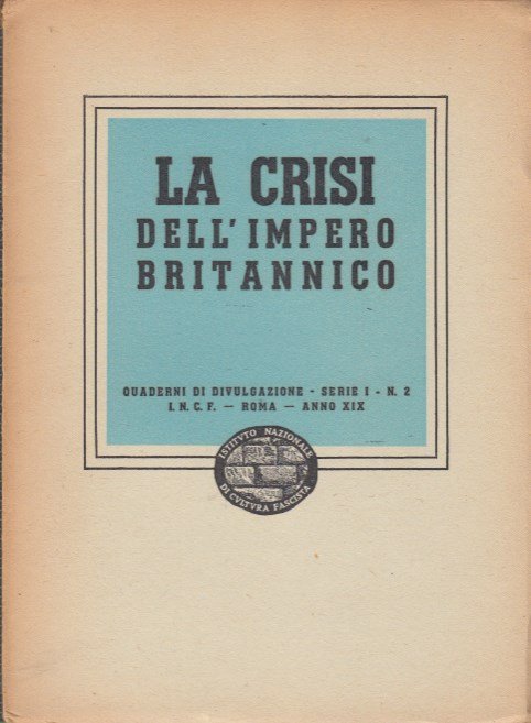 In-8 (cm 22,5 x 16), pp. 44 brossura editoriale. Collana quaderni di divulgazione, Serie I, n.2 INCF Roma, Anno XIX: Ex libris all'interno della brossura anteriore. Tipica brunitura della carta. MOLTO BUONO