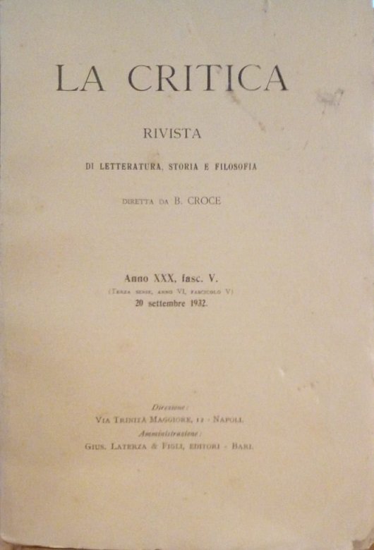 LA CRITICA - RIVISTA DI LETTERATURA, STORIA E FILOSOFIA DIRETTA DA B. CROCE - ANNO XXX, FASC. V - 20 SETTEMBRE 1932