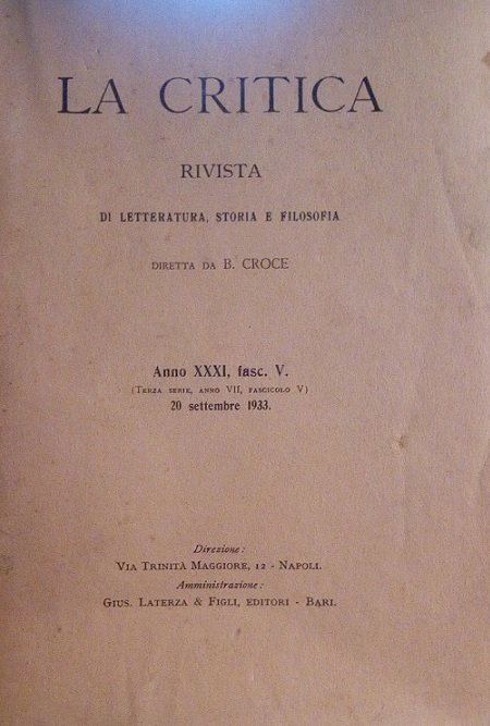 LA CRITICA - RIVISTA DI LETTERATURA, STORIA E FILOSOFIA DIRETTA DA B. CROCE - ANNO XXXI, FASC. V - 20 SETTEMBRE 1933