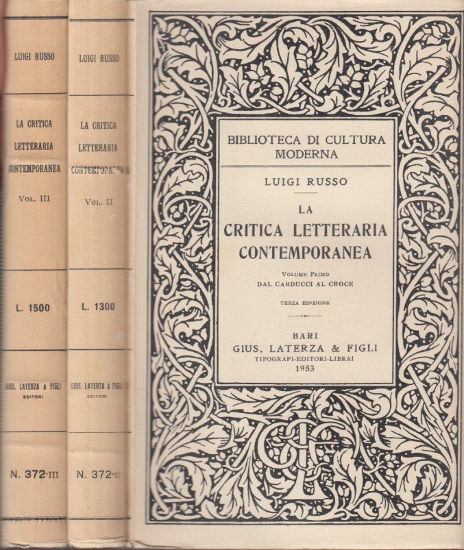 La critica letteraria contemporanea. Volume primo Dal Carducci al Croce, Volueme secondo: Dal Gentile agli ultimi romantici, Volume Terzo: Dal Serra agli ermetici