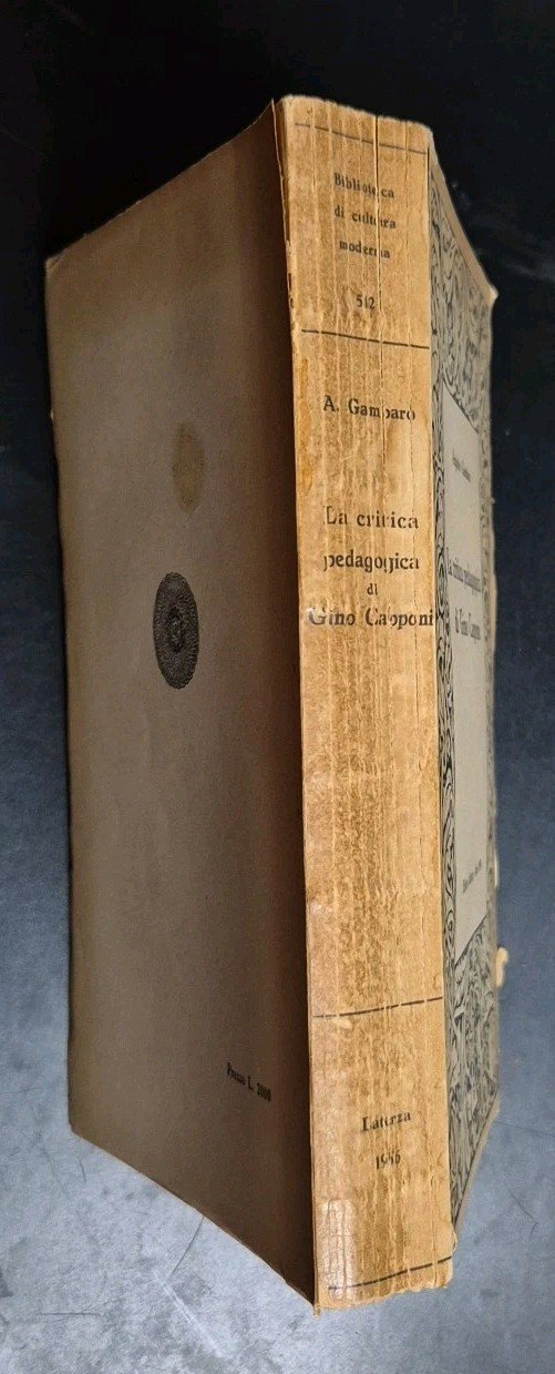 LA CRITICA PEDAGOGICA DI GINO CAPPONI di Angiolo Gambaro 1956 Laterza Libro