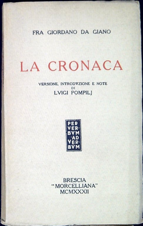 Giordano da Giano; Pompili, Luigi, curatore La Cronaca. Brescia, Morcelliana 1932, 18 137 p. 137 p. ; 18 cm. (47419)