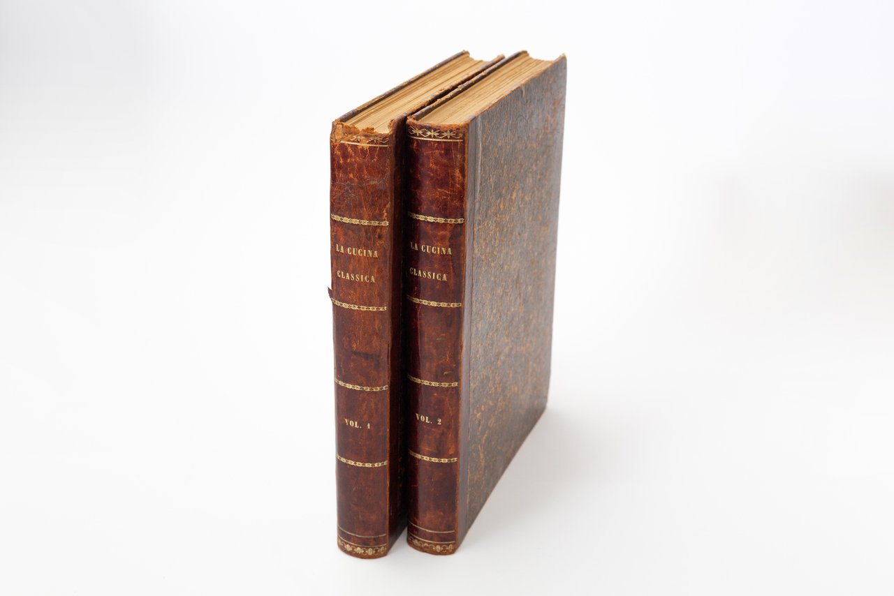 In-folio, mm 295x225, due volumi di pp. LVI, 303, (3) e pp. 363, (3). Legature coeve in mezza pelle con titoli in oro al dorso. Con numerose illustrazioni nel testo e 64 illustrazioni litografiche a piena pagina. Rarissime e marginali fioriture (più accentuate alle antiporte di entrambi i volumi), peraltro bell'esemplare, fresco e solido. Seconda edizione italiana, poco comune, di questo ponderoso e importante trattato di gastronomia internazionale, stilato dai due capi di cucina della casa reale di Prussia. . *** TUTTI I NOSTRI LIBRI SONO VISIBILI PREVIO CONTATTO MAIL O TELEFONO NELLA NUOVA SEDE DI MILANO: LIBRERIA COSMOPOLIS, VIA JOMMELLI, 22. ***