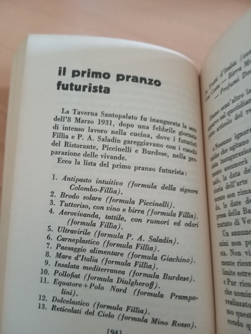 La cucina futurista, Marinetti - Fillia, Longanesi, 1986