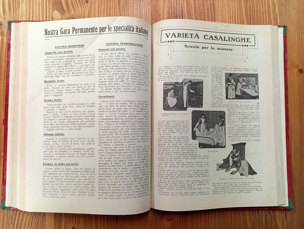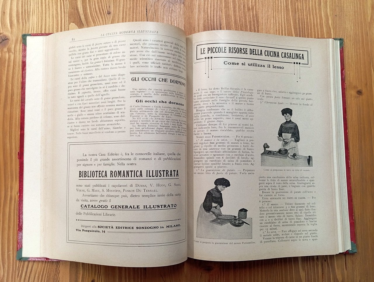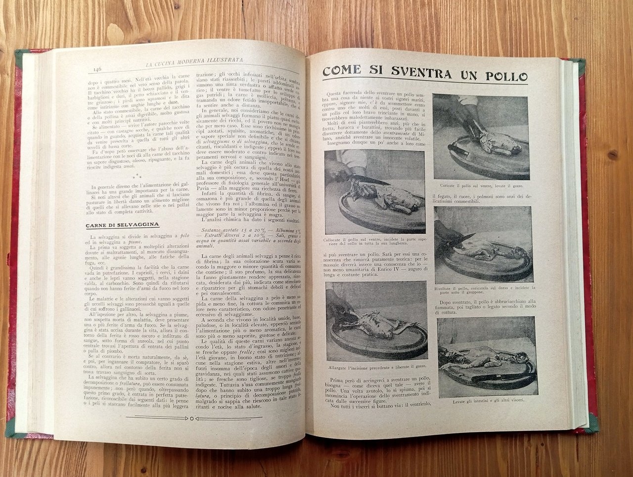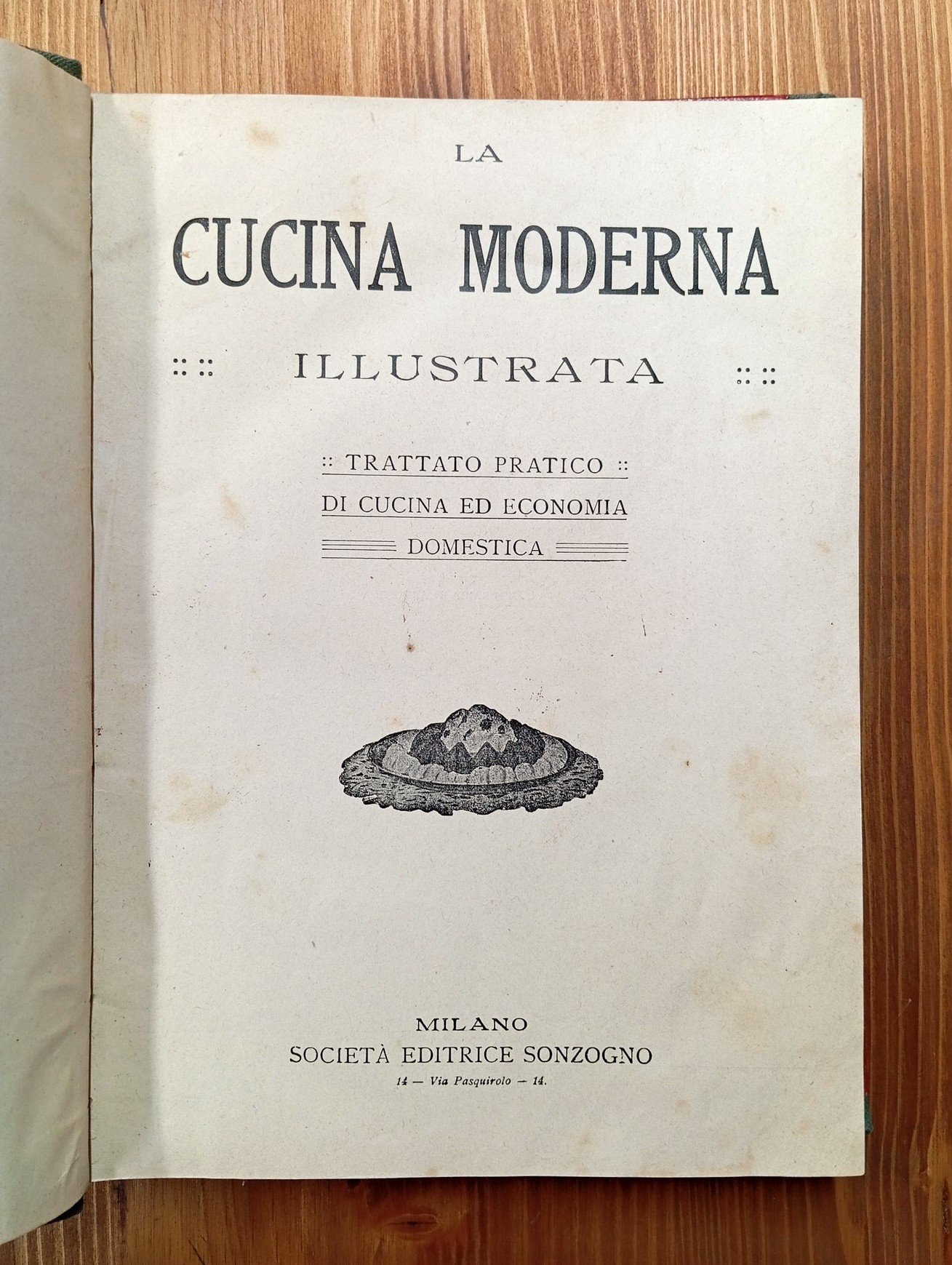 Al frontespizio: "La cucina moderna illustrata. Trattato pratico di cucina ed economia domestica" - Raccolta della prima annata completa, da gennaio a dicembre 1911, della rivista edita da Sonzogno. Volume in legatura amatoriale in mezza tela grigia, raccoglie 24 fascicoli di 16 pagine ciascuno, per complessive 384 pagine a numerazione continua, con molte e belle illustrazioni in nero nel testo. In apertura al volume, dopo il frontespizio, indice delle ricette e degli articoli. Lievi segni del tempo, esemplare in ottime condizioni complessive di una pubblicazione non comune.